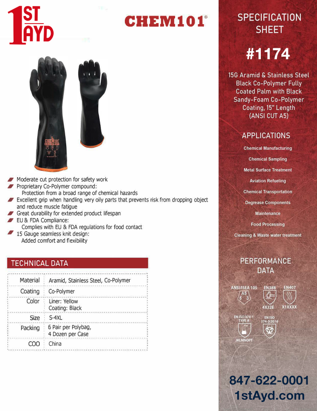 Proprietary Co-Polymer Compound: Protection from a broad range of chemical hazards