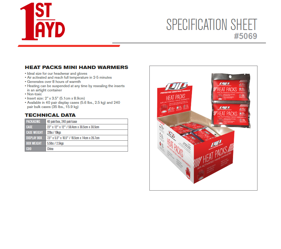 Heat Packs Air Activated Hand Warmers 40 Pair/case