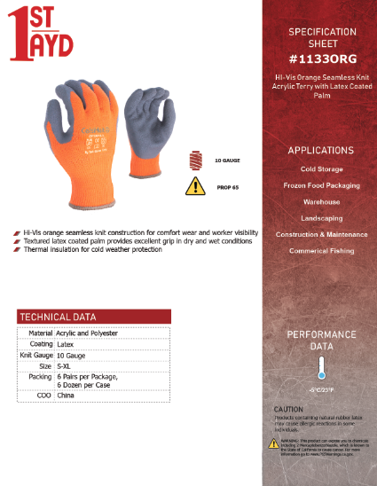 Hi-Vis Saftety Orange Glove 10 gauge Latex Coating- Multiple Sizes