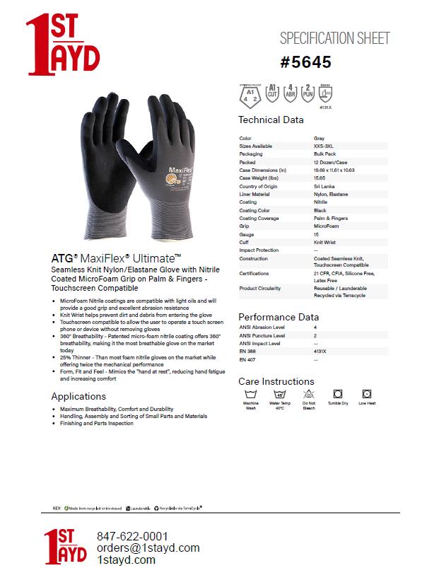 - Thinly-coated Microfoam outer for added grip without compromising dexterity.